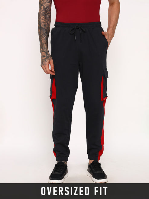 Unstoppable Oversized Cargo Joggers - Black & Red