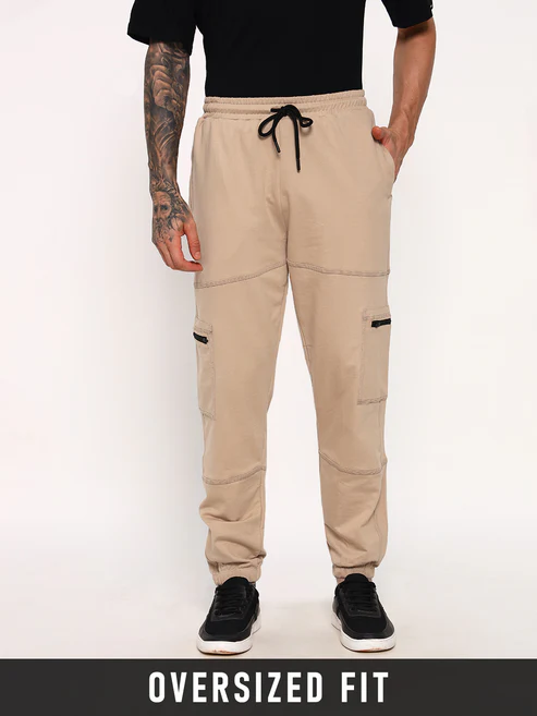 Hector Cuts Oversized Cargo Joggers - Beige
