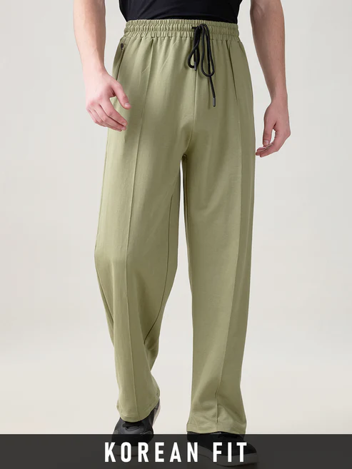 Korean Fit Relaxed Joggers - Olive Green
